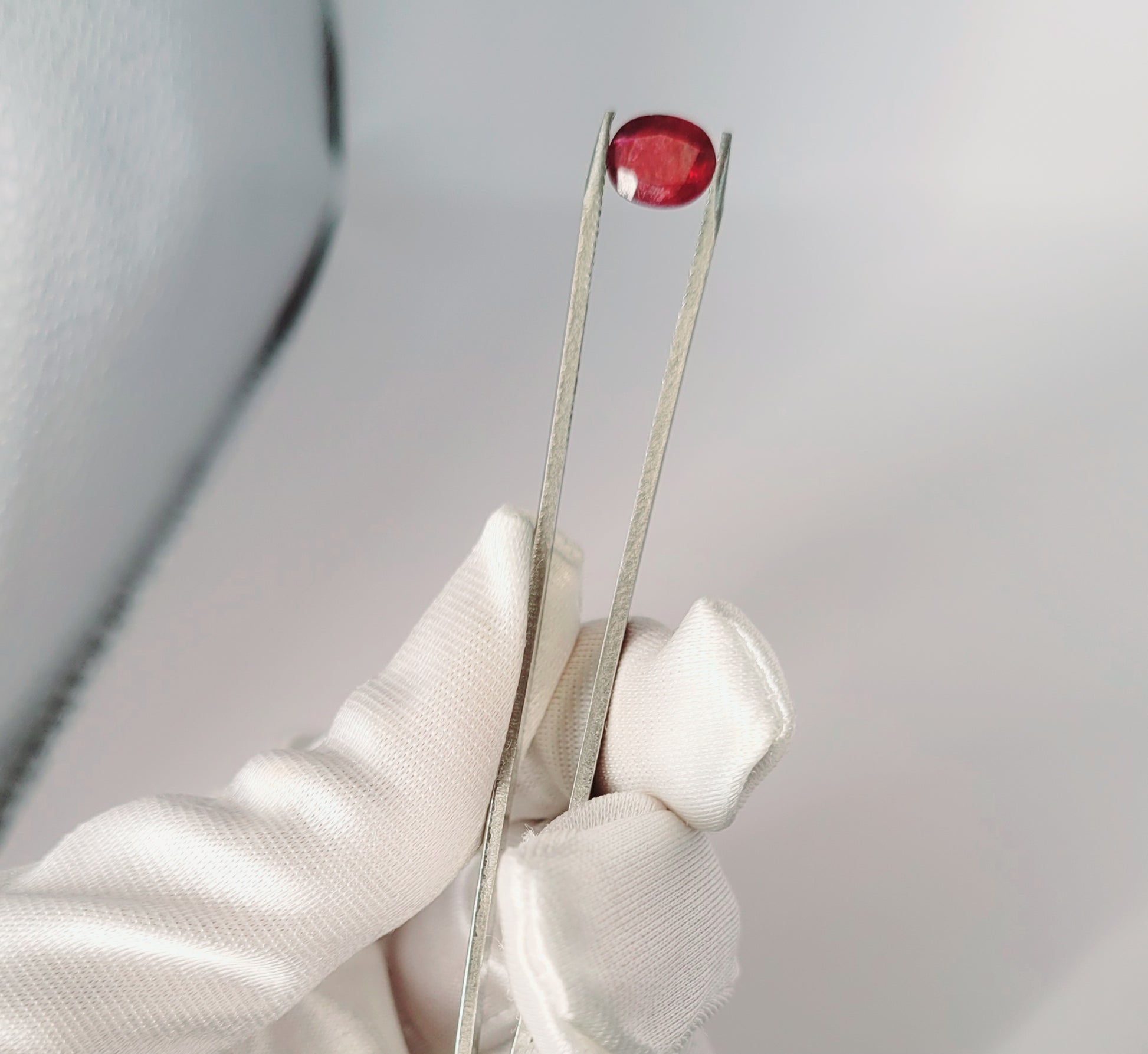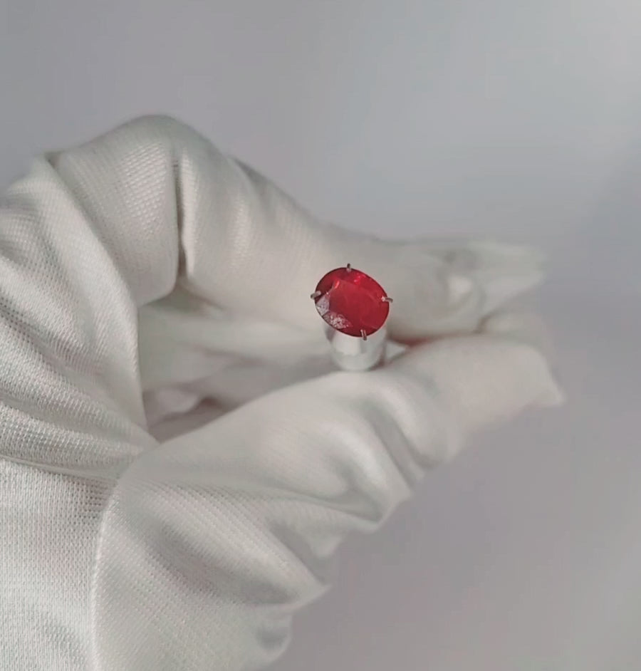 This exquisite 1.80 carat Kashmir ruby is not only a symbol of luxury and beauty, but also has potential benefits such as improved physical health, emotional healing, mental well-being, and even aiding in spiritual growth. Its durable, non-porous properties and red color due to its chromium trace make it a truly special gemstone.